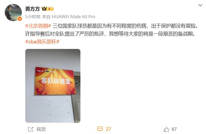 在输球赛后,许利民对新赛季北京男篮的前景十分担忧,据媒体人勇方方发文表示:“三位国家队球员都是因为有不同程度的伤病,出于保护都没有冒险。许指导赛后对全队提出了严厉的批评,我想等待大家的将是一段艰苦的备战期。”